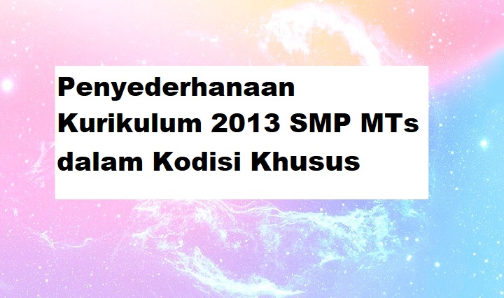 Penyederhanaan Kurikulum 2013 SMP - Pada kesempatan kali ini saya akan memberikan file penyederhanaan kurikulum 2013 untuk SMP dalam kondisi khusus.