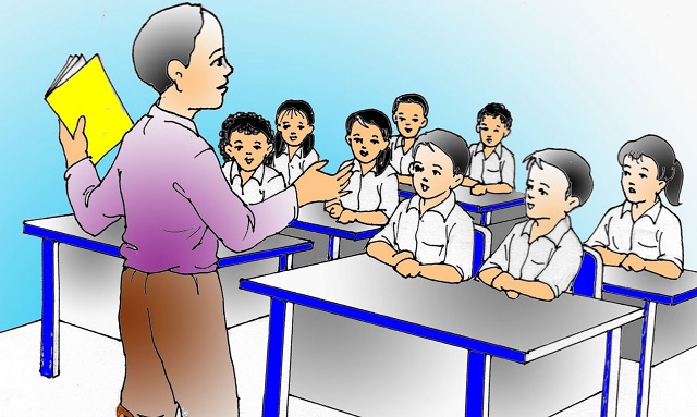 Saat pelajaran berlangsung dikelas, terjadi dialog antara guru dan muridnya.