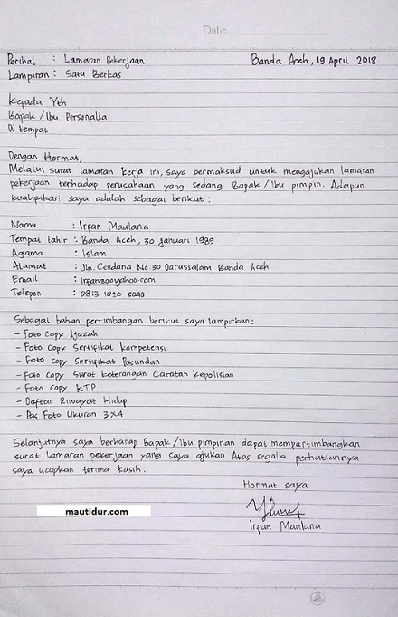 25. Contoh Surat Lamaran Kerja Tulis Tangan